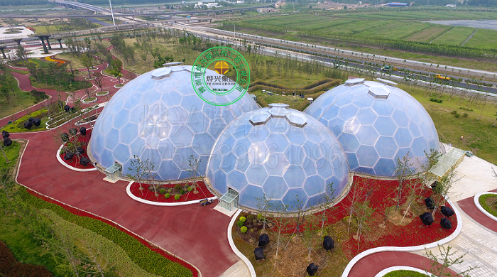 案例詳情: 連云港ETFE球形溫室是以“人與植物共生共融”為主題,融合高科技手段建設(shè)而成的一個集科研教育、科普展示及商業(yè)餐飲為一體的綠色溫室展館。