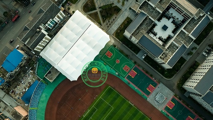 燁興-桐梓一中運動場鋼膜結(jié)構(gòu)球場雨棚工程是政府專項撥款項目,膜結(jié)構(gòu)工程面積2850平米,兩個標(biāo)準(zhǔn)籃球場和四個標(biāo)準(zhǔn)羽毛球場以及相關(guān)觀賽區(qū)域被納入膜結(jié)構(gòu)的遮蓋之下。此工程全部采用進口白色杜肯PVDF膜材,具有良好的透光及防紫外線性能,工程質(zhì)保15年。