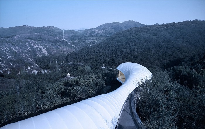工程概況:泰安書吧膜結(jié)構(gòu)工程是一個(gè)集觀景、閱讀、休閑娛樂(lè)于一體的綜合項(xiàng)目,既有膜結(jié)構(gòu)建筑本身的現(xiàn)代化氣息,又有設(shè)計(jì)者及建造者高超技藝賦予的精致典雅,給人一種時(shí)尚別致卻又內(nèi)斂質(zhì)樸的觀感。本工程建筑屋面為流線形,建筑面積約600平米。外膜采用德國(guó)進(jìn)口白色環(huán)保膜材,內(nèi)膜采用PTFE內(nèi)膜,中間加保溫隔熱層,內(nèi)膜需要安裝燈光。屋面以下為全封閉空間,墻體采用落地玻璃形式,從各個(gè)角度都能獲得極佳的視野效果。