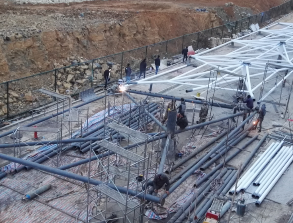 毫無疑問,燁興是個(gè)負(fù)責(zé)任的膜結(jié)構(gòu)工程公司。為了保證業(yè)主的工程能在春節(jié)前完工并投入正常使用,燁興目前正在重點(diǎn)施工合同上要求是在春節(jié)前完工的項(xiàng)目,除主要工程技術(shù)人員派駐外,還根據(jù)現(xiàn)場(chǎng)施工進(jìn)度,合理安排工人晚上加班趕工,每天至少加班3個(gè)小時(shí)。或許會(huì)有人問,為什么只加班3個(gè)小時(shí)而不搞24小時(shí)連續(xù)施工,在這里燁興統(tǒng)一作出解釋:進(jìn)入秋冬季后,夜晚天氣嚴(yán)寒,霜露嚴(yán)重,夜晚施工對(duì)人員健康危害較大,且不利于工程質(zhì)量,所以一般我們不考慮24小時(shí)連續(xù)作業(yè);另一個(gè)重要原因是,年末每個(gè)工地都要趕工,24小時(shí)連續(xù)作業(yè)需要布置至少3組人員,要多增加兩倍的施工人員,人員缺口是問題,也非常影響施工成本。