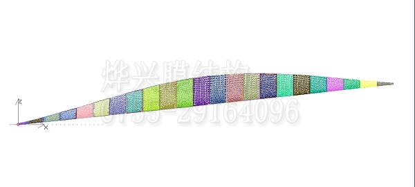 長(zhǎng)96米,最寬處18米,單片面積1200平方米,吊裝受力不平衡將導(dǎo)致膜材變形