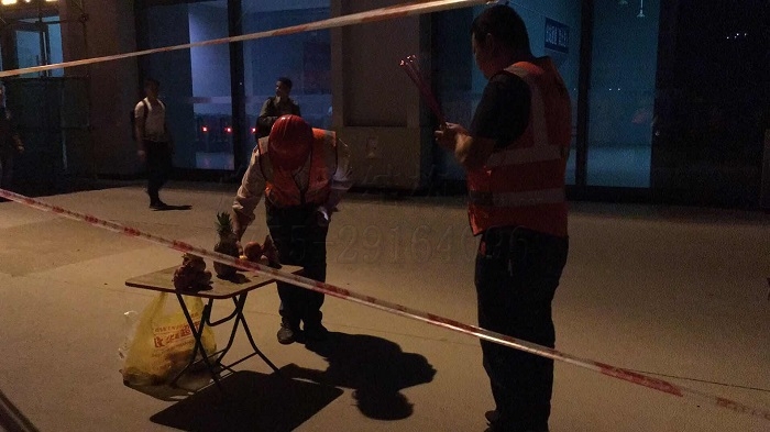 3月21日晚約10時30分,總工楊帆指揮雨棚吊裝人員各就各位。