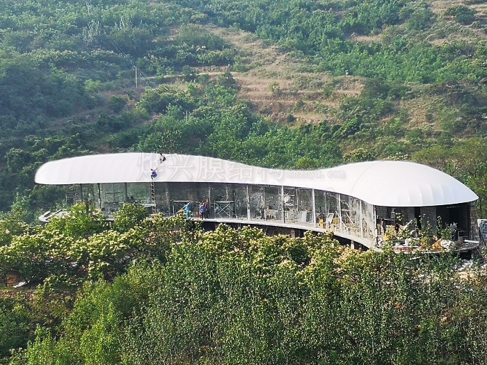 近日,燁興-泰安書吧膜結構工程悄然竣工。帶著“書吧”二字的工程項目,注定其必須被設計得精致典雅,還需要能工巧匠進行施工雕琢。項目的完工,是我們燁興膜結構項目團隊在深山中默默奮斗近一個月的成果。今天,小編將帶大家對項目做一個回顧分析。
