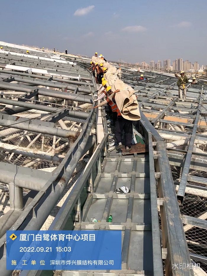 燁興—廈門白鷺體育中心場(chǎng)館項(xiàng)目已經(jīng)進(jìn)入到PTFE膜結(jié)構(gòu)裝膜階段,一起來看看現(xiàn)場(chǎng)施工近況吧。