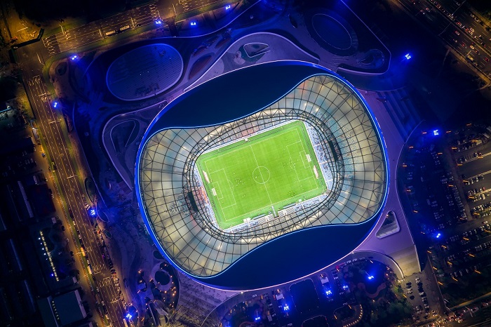 燁興公司作為青春足球場(chǎng)ETFE膜結(jié)構(gòu)供應(yīng)商,負(fù)責(zé)膜結(jié)構(gòu)分項(xiàng)的深化設(shè)計(jì)材料配套及施工安裝。追求經(jīng)典工程品質(zhì)”是我們長(zhǎng)久堅(jiān)持的理念之一,做項(xiàng)目先嚴(yán)謹(jǐn)論證再精細(xì)化施工,在燁興人的不懈奮斗下,青春足球場(chǎng)的建成建筑效果遠(yuǎn)比設(shè)計(jì)渲染圖好看,建成即成青島新地標(biāo)!