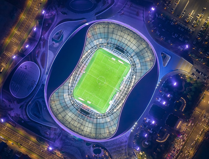 青島青春足球場(chǎng)是山東省首座五萬(wàn)座專業(yè)足球場(chǎng),滿足國(guó)際足聯(lián)國(guó)際A級(jí)比賽要求,是全國(guó)首個(gè)城站一體全民互動(dòng)式公園化體育綜合體。青春足球場(chǎng)的設(shè)計(jì)靈感由海而來(lái),取意“躍動(dòng)海浪”。場(chǎng)館屋面外圈主體采用鋁鎂錳板勾勒塑造上下穿梭、飄逸流動(dòng)的海浪造型,內(nèi)圈則用透明輕盈的ETFE膜結(jié)構(gòu)呼應(yīng)青島優(yōu)美的自然海岸風(fēng)光,彰顯了青島開放、現(xiàn)代、活力、時(shí)尚的城市氣質(zhì)。